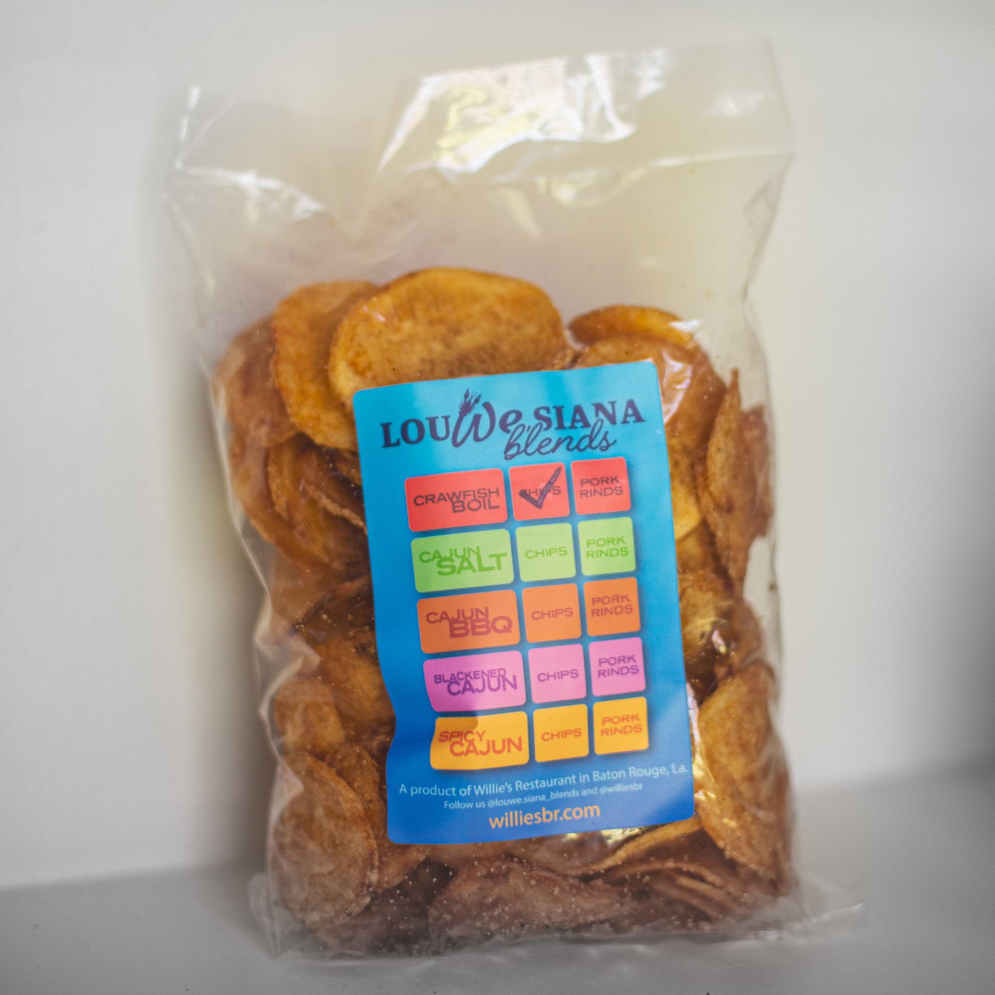 Our homemade chip seasoned with our very own CRAWFISH BOIL seasoning. A little kick of spice, hints of lemon, and lots of flavor!